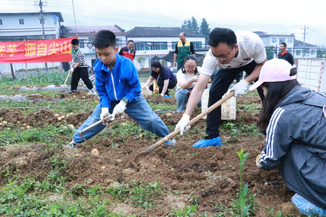 活动中,在技术员的指导与帮助下,家长和孩子们迅速掌握了挖洋芋的技巧,铆足了劲,拿起锄头对准洋芋根部,用劲儿挖......一垄垄白白胖胖的尖山马尔科(老品种洋芋)破土而出,家长和孩子们都沉浸在挖洋芋的欢乐气氛中。