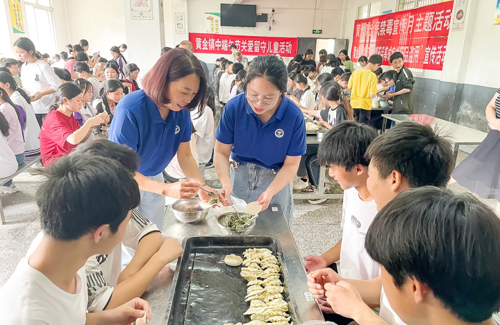 当天,政府干部、禁毒社工、学校师生等共同参与活动。大家一起调馅、包饺子,提前欢度端午节。同时,工作人员还向学生们展示仿真毒品,讲解毒品和涉麻精药品滥用的危害,引导大家坚决抵制毒品、珍爱生命。