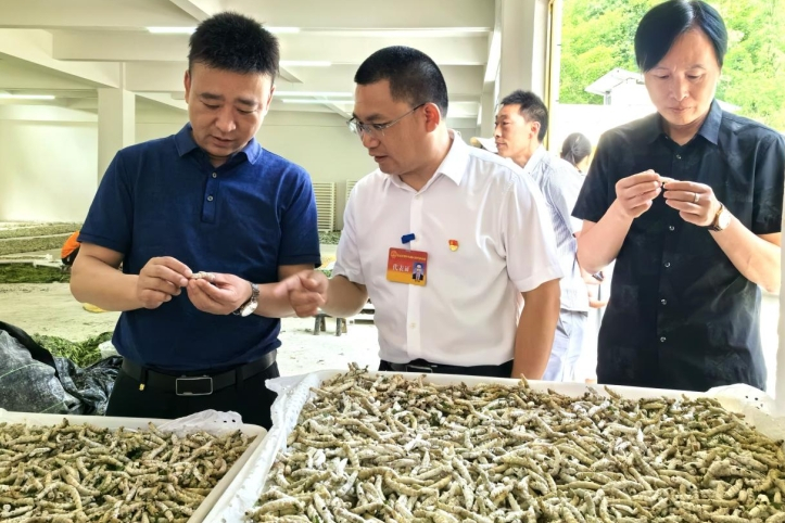 在双胜村僵蚕养殖基地,考察组听取双胜村主要负责人对目前的僵蚕养殖和传统蚕桑养殖进行了详细介绍,了解种桑养蚕中的常见问题,并围绕桑园种植管理、蚕房建设、养蚕技术常见病害等多个方面进行交流。