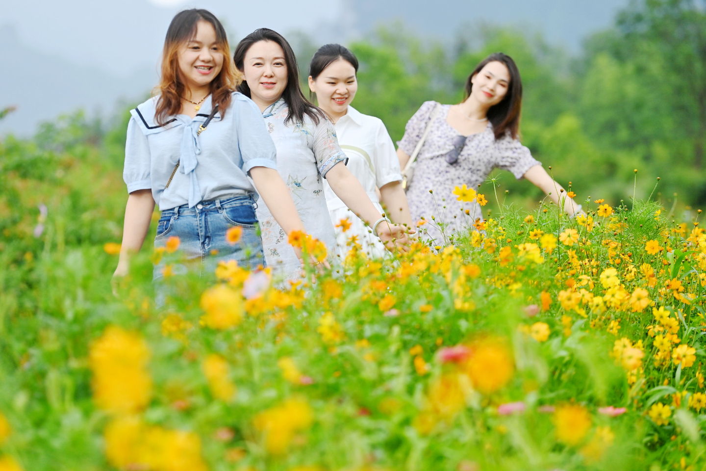 6月14日,在叠石花谷景区,几百亩马鞭草、隔山花、绣球花相继开放,吸引了一些游客前来赏花、拍照。(特约通讯员 陈碧生 摄)责编:熊怡