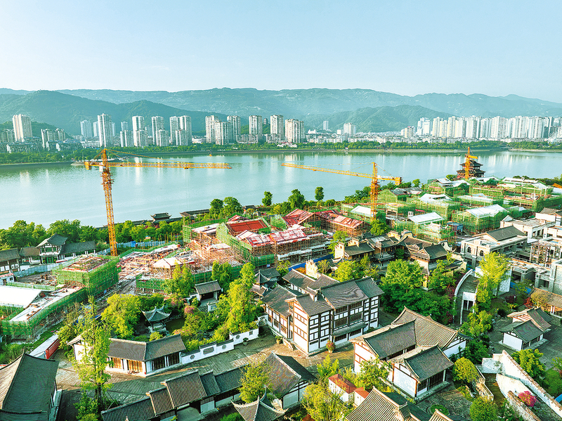 近年来,我区大力实施城市升级改造,逐步完善旅游基础设施及服务功能,优化营商环境,提升城市品质,满足市民和游客的精神文化需求,推动文旅经济高质量发展。图为故城文旅街区施工现场。