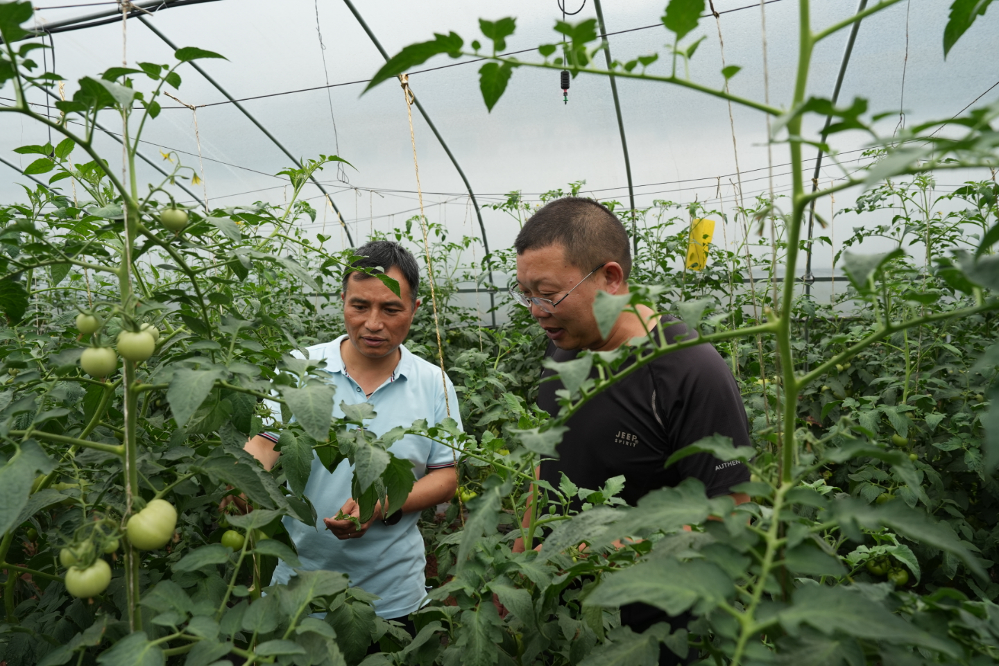 “满园红绿如画,瓜果堆似朱玉。”连日来,官渡镇大塘村的蔬菜大棚内生机盎然,一架架黄瓜藤长势旺盛,青翠的叶子下挂满大大小小的黄瓜;一排排西红柿秧苗整齐排列,藤蔓上挂满沉甸甸的西红柿,红的绿的,大大小小,个个圆润饱满晶莹剔透。