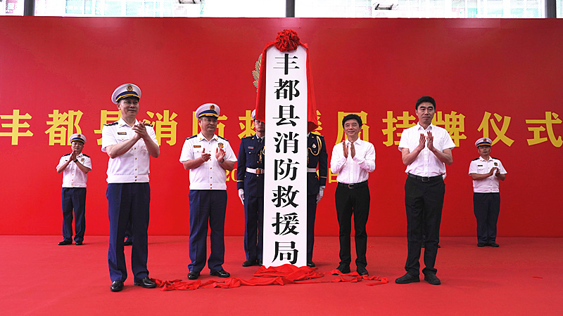 6月28日,丰都县消防救援局挂牌仪式举行。国家消防救援局副局长宋新春,市消防救援局局长李俊东,市消防救援局政治部主任王义宽,县委书记张国忠,县委副书记、县长唐守渊出席仪式并揭牌。县委常委、常务副县长刘书获主持挂牌仪式。