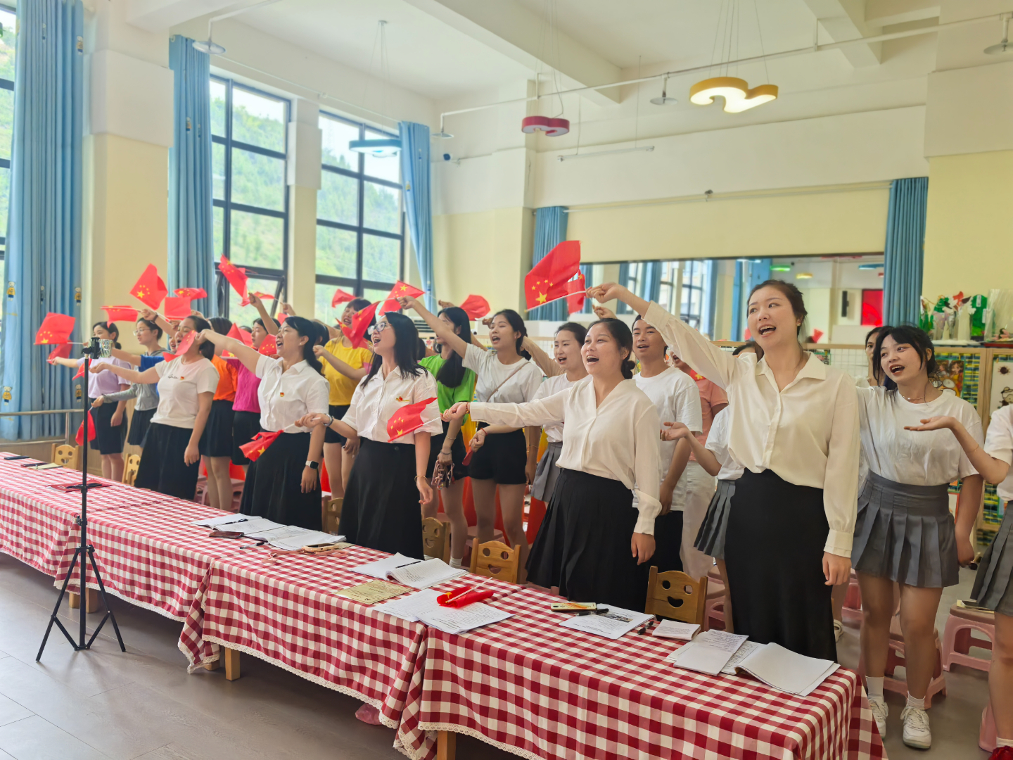 活动中,大家分组献上精彩的舞蹈《名字叫中国》,朗诵《血写的课本》,歌伴舞《唱支山歌给党听》等多种形式的文艺节目,最让人激动的就是党纪知识和清廉知识竞赛环节,大家都争先恐后发言,纷纷抢答,场面既严肃又热烈。
