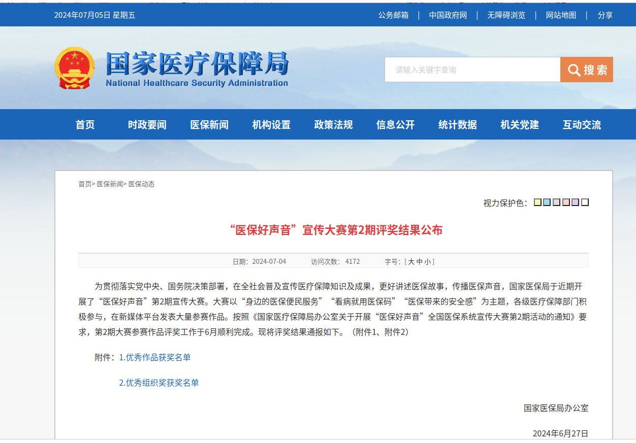 7月4日,国家医保局公布“医保好声音”宣传大赛第2期评奖结果,县医保局选送的作品《养生也要养 医保也要缴》荣获以“医保带来的安全感”为主题的地级市二等奖。