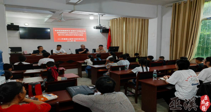 7月8日,胜利乡龙狮村村“两委”及驻村工作队、联合四川化工职业技术学院“三下乡”活动代表,共同举办暑假小学生公益学习班开班仪式。