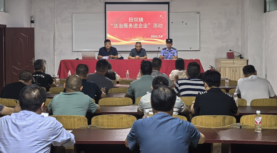 7月9日,田坝镇新时代文明实践服务中心与田坝镇派出所联合开展“法治服务进企业”活动,20余名民营企业代表参加。
