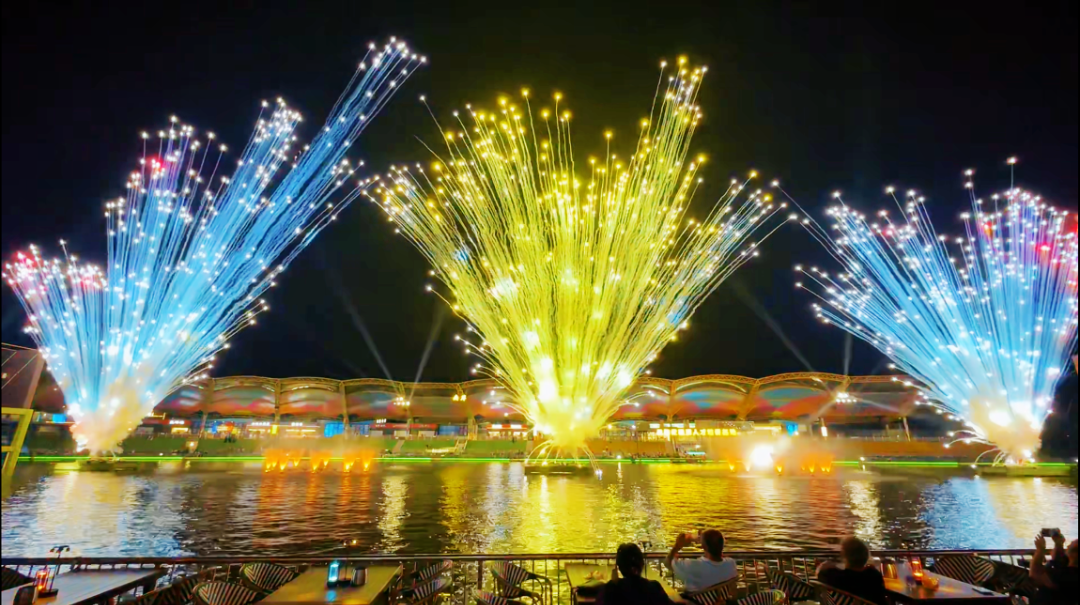 同时观看水上演艺及烟花秀