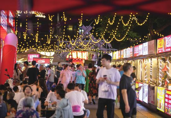 近年来,大足区围绕“食、购、游、娱”等主题打造特色夜市、文艺演出等多元消费新场景,不断提升城市“夜经济”消费活力,满足了群众灵活就业、休闲娱乐等需求,丰富了市民和游客的夜间生活。