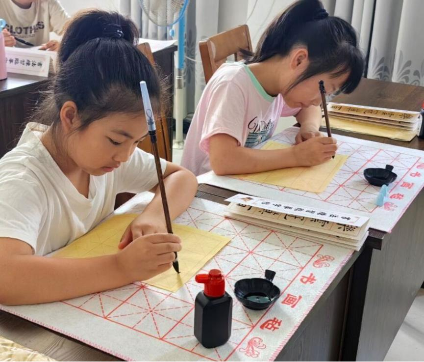 △三坪村的孩子们在学习写毛笔字 曹婷摄
