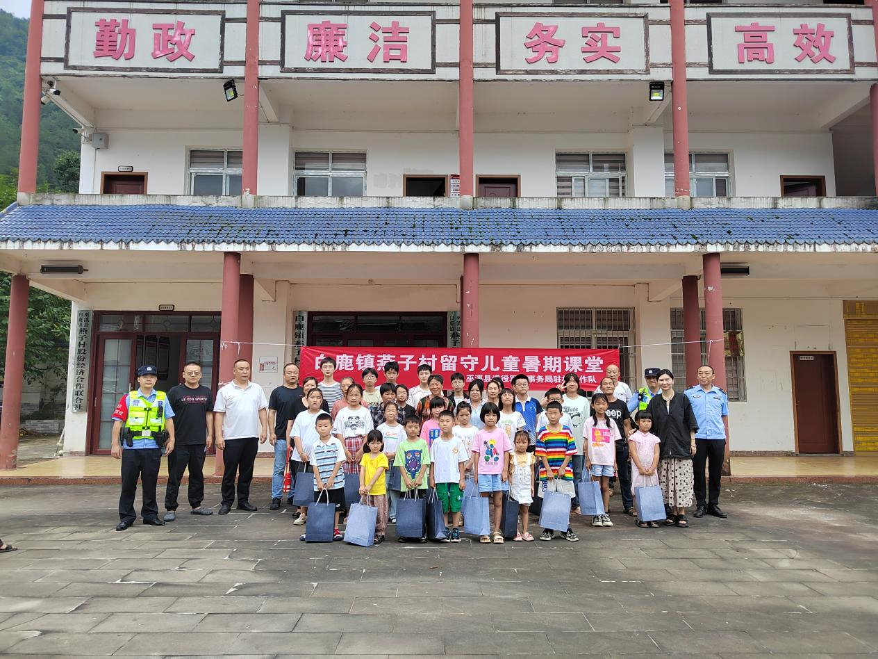 7月19日,白鹿镇燕子村驻村工作队携手白鹿镇妇联、团委、新时代文明实践所、派出所在燕子村开展留守儿童暑期安全教育课堂。
