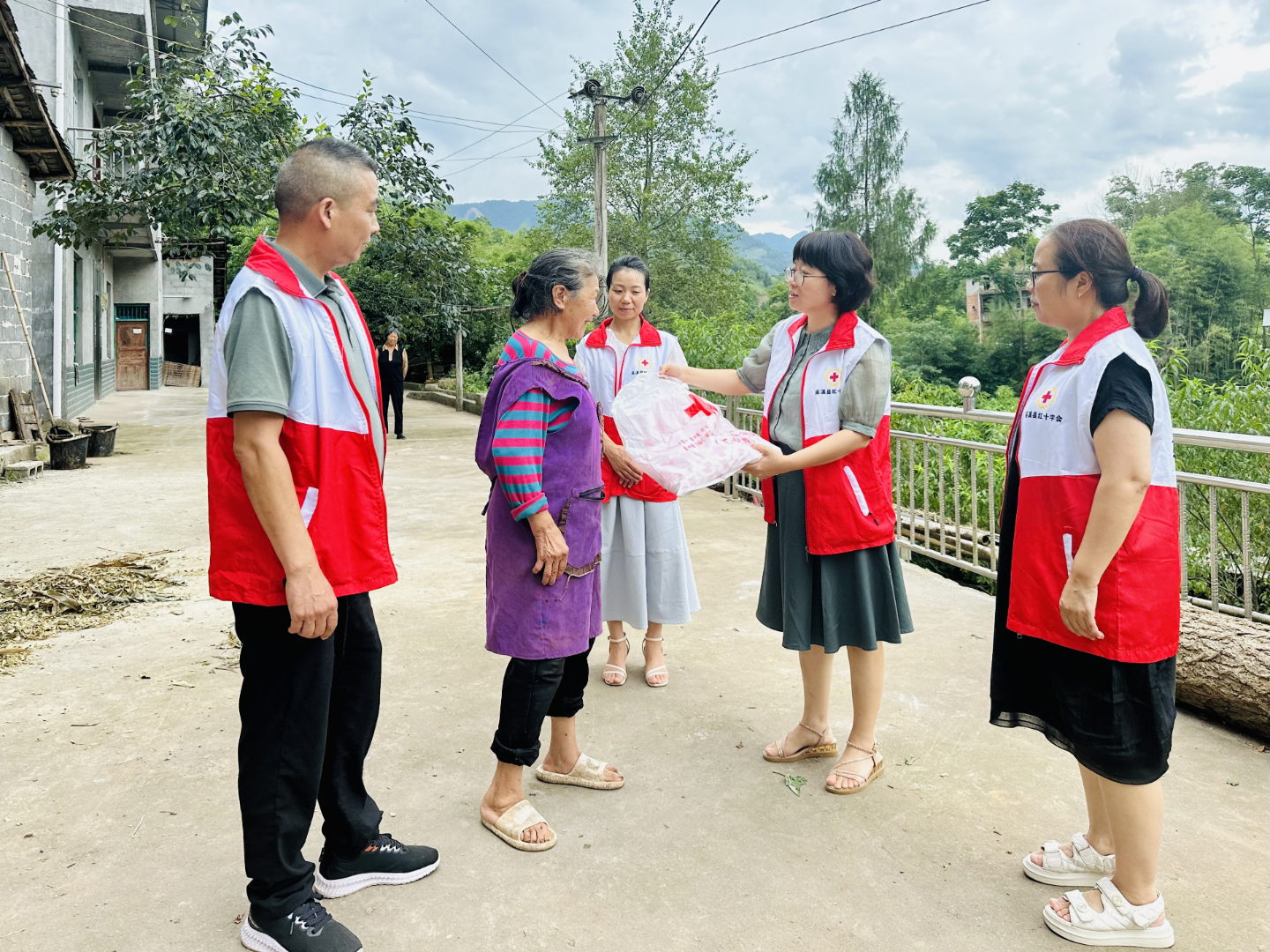近日,峰灵镇红十字会为受极端强降雨天气影响受灾群众发放救灾物资,共为10户受灾家庭送去红十字会温暖。