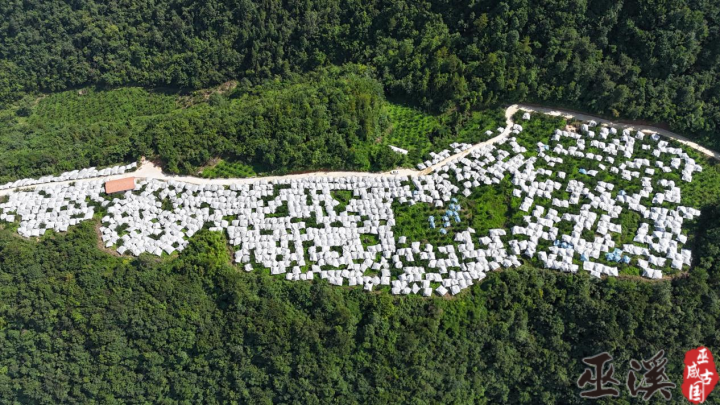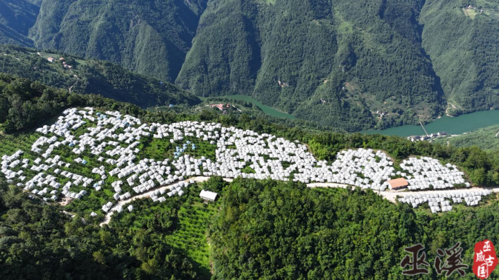 在中梁乡石锣村,一幅独特的农业景观映入眼帘:翠绿的山林间,棵棵晚李树身披洁白的塑料薄膜“外衣”,宛如云海中的点点繁星,既美观又充满生机。