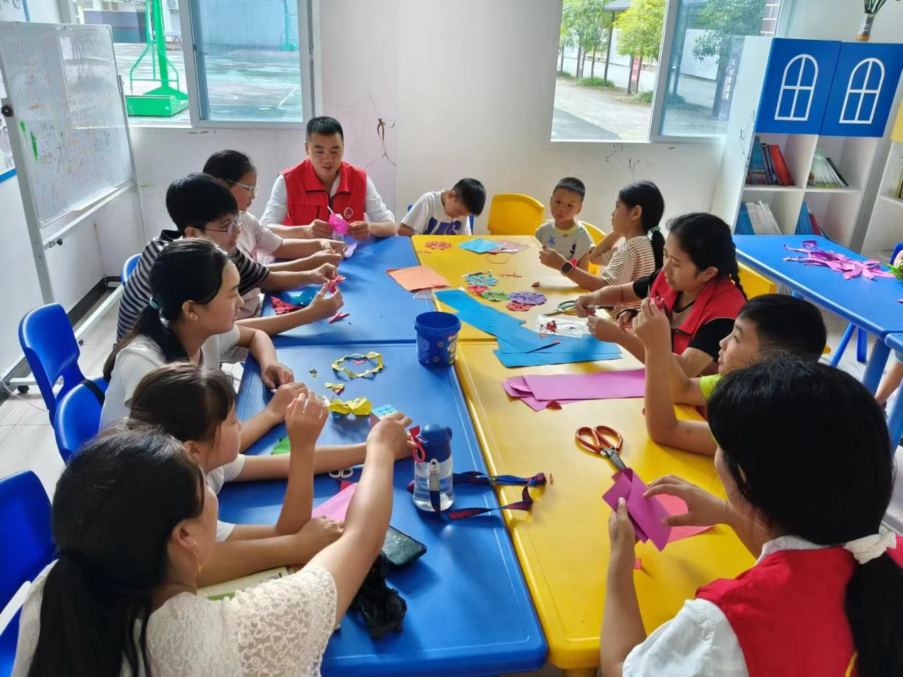 随后,孩子们根据自己兴趣爱好挑出喜欢的珠子,从穿珠引线到打结收尾,把最美好最真切的祝福串进手链。在志愿者的指导下,一件件蕴含着美好祝愿的小物件在大家的手中呈现,孩子们兴奋的交流着创作心得,欣赏着各自的得意之作,现场欢声笑语不断,热闹非凡。(通讯员 向雪)