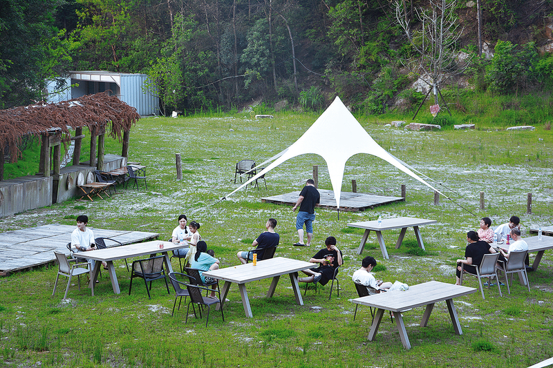 游客在露营基地休闲纳凉。K花式避暑享清凉