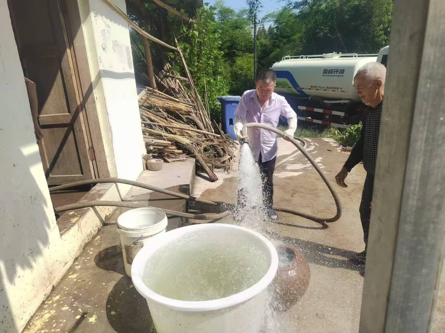 “这样的高温天气,岂能缺水!”任德印迅速协调镇政府的应急救援水车前往救急。到任德成家后,任德印帮忙把老人家里所有的盆盆罐罐都拿出来装满水。