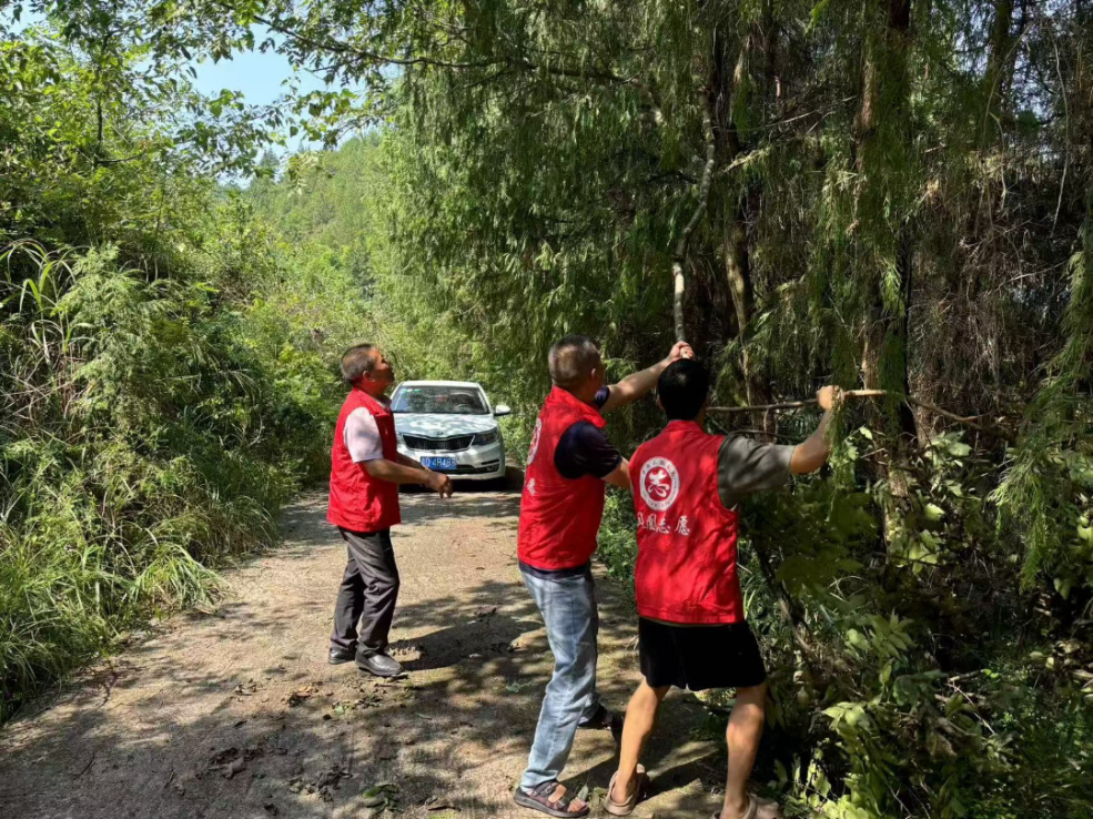 志愿者们抵达后,迅速分工合作,有的人手持镰刀,精准高效地切割树枝,有的人则负责将清理出的树枝搬运至路边安全区域。经过半小时的紧张努力,原本横亘在路上的大树被彻底移除,道路恢复了往日的畅通无阻。