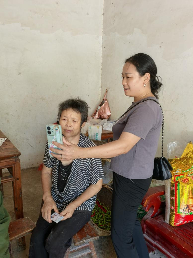 “嬢嬢,请看手机镜头,头往左边转一下,眨眨眼……好,认证成功啦。”近日,城厢镇采取“零距离”上门服务,为辖区空巢老人进行养老保险认证。