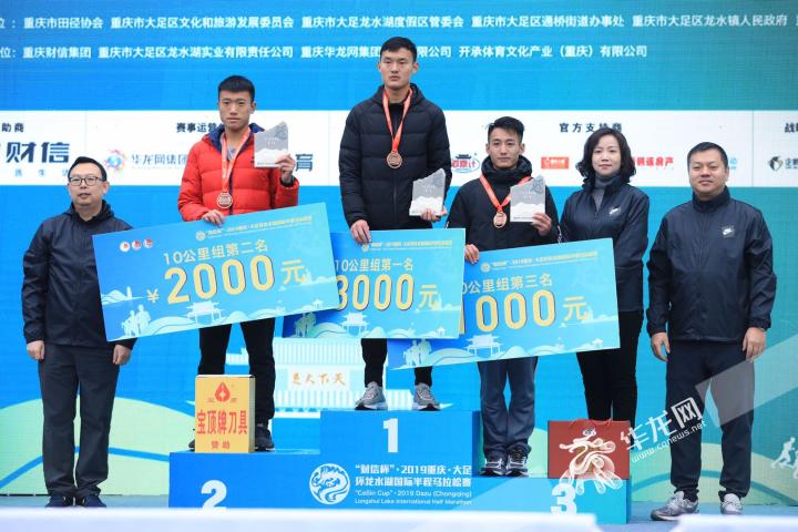 10公里(男子)成绩:吉言以00:34:05成绩获得男子组第一名,马勇、汪光分别获得二、三名。华龙网集团党委书记、董事长李春燕 ,华龙网集团副总裁、副总编辑戴佳毅,重庆财信企业集团公司总裁助理安华分别为获奖选手颁奖。(华龙网-新重庆客户端记者 谢鹏 )