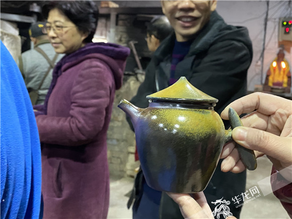 这把刚出窑的“钓鱼翁”壶引起大家的关注。华龙网-新重庆客户端记者 曹建 摄