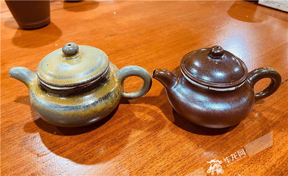 两把几近完美的柴烧荣昌陶壶。华龙网-新重庆客户端记者 曹建 摄