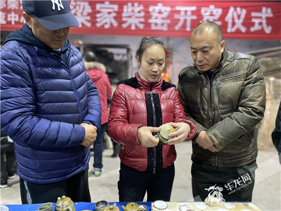 所有陶器出窑,本次开窑活动结束。据介绍,本次共有167件陶器入窑,样式种类繁多,茶具中,茶壶种类有秦权、西施、石瓢、半月等十几种传统经典壶型,也有玉兰、金韵等老梁家自主设计开发的新式壶型。此外还有柴烧杯、公道杯等陶器。华龙网-新重庆客户端记者 曹建 摄