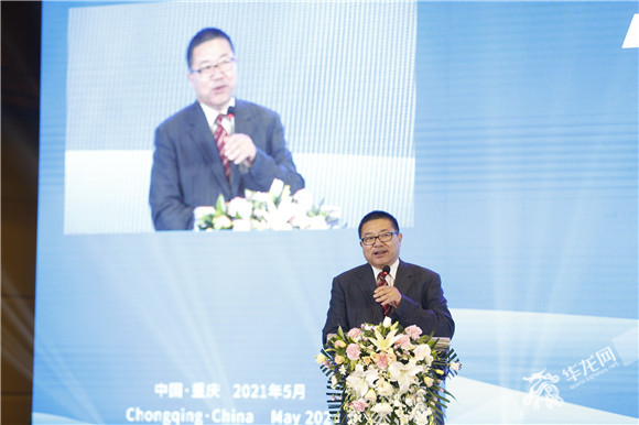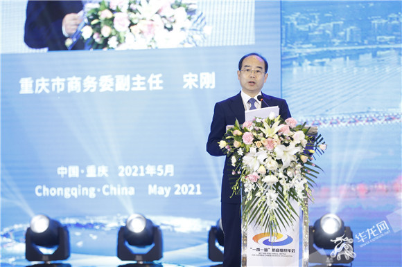 宋刚:借此机会,我也与大家分享重庆发展的新机遇。重庆是中国中西部唯一的直辖市、长江上游地区经济中心、国家中心城市,中国最具增长潜力的城市之一。全市幅员面积8.24万平方公里,户籍人口3400万,经济发展腹地广阔,潜力巨大。重庆高质量发展动能持续增强。2020年全市GDP超2.5万亿元,增长3.9%。固定资产投资、社会消费品零售总额、进出口总值分别增长3.9%、1.3%、12.5%。实际利用外资连续10年超100亿美元。2021年一季度,全市经济运行稳中加固、稳中向好,延续了好态势、实现了“开门红”。GDP超过5995亿元,增长18.4%;进出口总值达1802亿元,增长60.4%;实际利用外资18.4亿美元,增长35.9%;社会消费品零售总额3378.8亿元,增长41.7%。各项主要指标均居中西部前列。成渝地区将打造成为具有全国影响力的重要经济中心、科技创新中心、改革开放新高地、高品质生活宜居地,打造带动全国高质量发展的重要增长极和新的动力源,打造区域协作的高水平样板。在商务领域,我们将联手四川省推动十大合作事项,包括共同建设内陆开放高地、国际消费目的地、川渝自贸试验区协同开放示范区、“一带一路”进出口商品集散中心、跨境电子商务综合试验区等。共同举办第三届中国自贸试验区协同开放发展论坛,推动高频服务事项“互认互办”。深入推进成渝地区双城经济圈商务协作交流,努力唱好“双城记”,建好“经济圈”。(重庆市商务委副主任宋刚作招商引资推介。华龙网-新重庆客户端记者 石涛 摄)