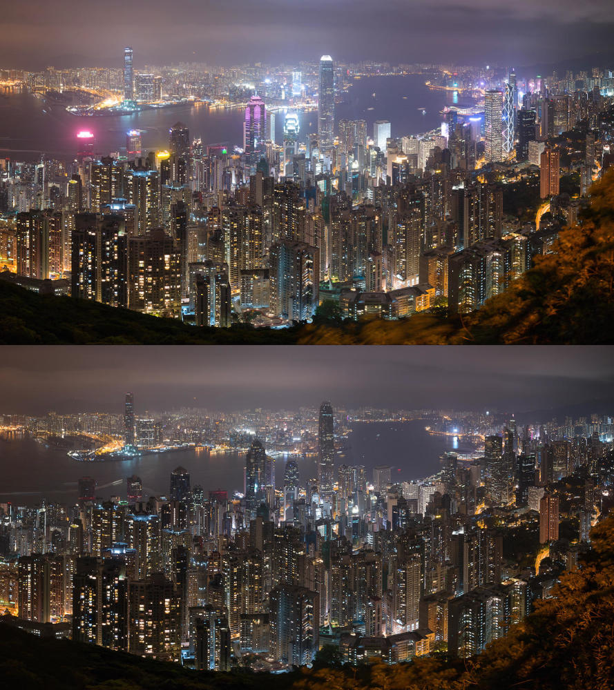 香港多座建筑熄灯 响应“地球一小时”行动。摄影:王丢丢