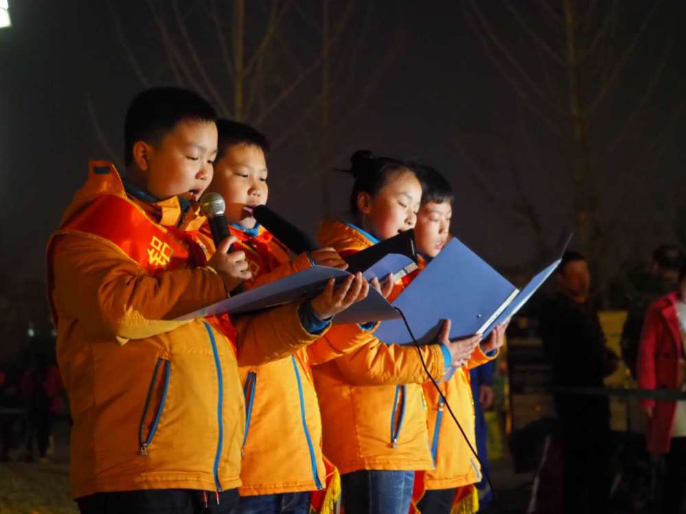 淄博绿丝带公益联合中国全球图片总汇(移课中国)发起星空音乐会活动,现场小朋友朗诵诗歌,上百人组成60+图案以表示对环境保护的支持。
