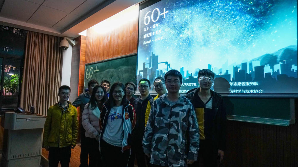 在熄灯期间,由中国绿发会星空工作委员会发起的“开启我的60+生活,找回失去的星空”活动,联合全国各地高校、社团与环保志愿者,共同举办的路边天文夜观测活动,向社会公众倡导减少使用并控制光污染及大气污染,保护美丽星空,宣扬可持续、节能环保的生活理念。