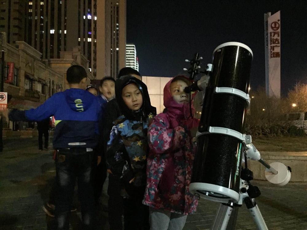 银川市青年天文科普教育协会在西夏区西夏万达金街广场举办的路边天文夜活动。