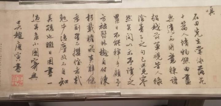 除了金农、董其昌、文征明、祝枝山、王宠、赵孟頫等老朋友外,唐寅早年的行书《和沈周落花诗》让我再次眼前一亮!与大都会博物馆墨竹扇面、大英博物馆《西山草堂图》构成与之前印象中不同的文人书画家形象!