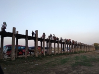 乌本桥在阿马拉布拉古城 横跨东塔曼湖桥长1200米 1000多根桥柱是历史见证 此桥是世界最长的柚木桥 整个桥体由珍贵柚木建成 建于贡榜王朝敏东王时期 乌本桥经历一百六十多年 历岁月沧桑饱尝日晒雨淋 乌本桥仍屹立东塔曼湖上 漫步桥上你会随步履摇晃 还与各色人种人擦肩而过 我仿佛行走在另一时空中 东塔曼湖水就在脚下延伸 远山逶迤起伏似漫长画卷 一叶小舟在绿色湖面滑动 期待已久的落日就在天边 那轮深红色夕阳镶嵌云天 那可是无限美丽的景色呵 那可是情人心中的圣果呵 一双双依偎着的恋爱男女 在桥上情话缠绵互诉衷肠 伴着身后温暖暧昧的气氛 互相倚靠直等到太阳西沉 踏着桥面珍贵的柚木桥板 每块挢板都凝聚爱情箴言 想起那仙女遇王子的故事 此桥可谓缅甸天下爱情桥 在此刻人景合一心灵契合 我的心放飞出洁白的鸽子 看人生那份绚烂那份执着 品世间那份激烈那份逐梦 生命画卷真让人无限感慨 (2019年5月30日于缅甸内比都) 图/文 曾绍仑 推荐阅读: 作者简介:曾绍仑,网名“可之绍仑”,作家、诗人。重庆市作家协会会员,南岸区作家协会副主席,历任中国兵装集团某大型企业职工大学副书记、副校长、计划处处长、董事会秘书、宣传部部长等职,曾任市级慈善机构副秘书长、宣传部部长,现为市级慈善机构慈善文化基金副秘书长、《重庆慈善》杂志副总编、《南岸作家报》主编。 于一九八O年四月开始在《四川日报》副刊发表散文,随后三十多年间笔耕不断,在多种报刊上陆续发表千余篇(首)各类文学作品,出版诗集《雨街》《心路履痕》,作品收录多种文学作品集,多次获得省(部)级以上文学作品奖,获中国城市优秀诗人称号。