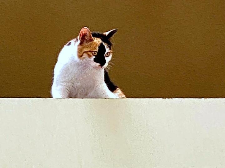 在街边小店的看板上,站着一只猫,看到它让我有触电的感觉,这只猫的毛色与我家曾喂养猪的毛色几乎一模一样。