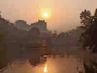 深冬的城市醒得晚,太阳也要八九点钟才肯露头,露面时却已经越过楼顶,挂上枝头。此时的太阳就像新嫁的媳妇,温软暖心,眼可直视,令人向往。于是,橘色很快染红了半边天。随着太阳越升越高,气温也越升越高,天地都明亮起来。阳光赋予万物生命、希望,给世界注入活力和颜色。