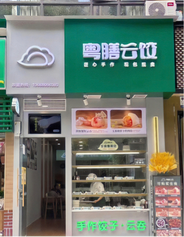 粤膳云饺(龙腾盛世店)位于迎宾东路164号,店内售卖饺子为主,但同时也有云吞、面、米饭,另外就是潮汕手打牛肉丸及港式点心。饺子和云吞内馅口味都十分丰富,汤底味道选择也具有多样性。
