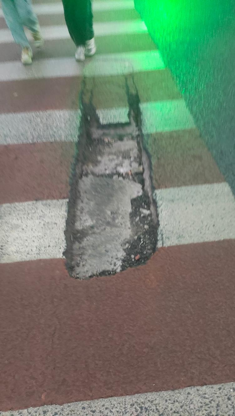 中交康桥人行横道的路有个坑,麻烦修补一下,每天都有学生过路